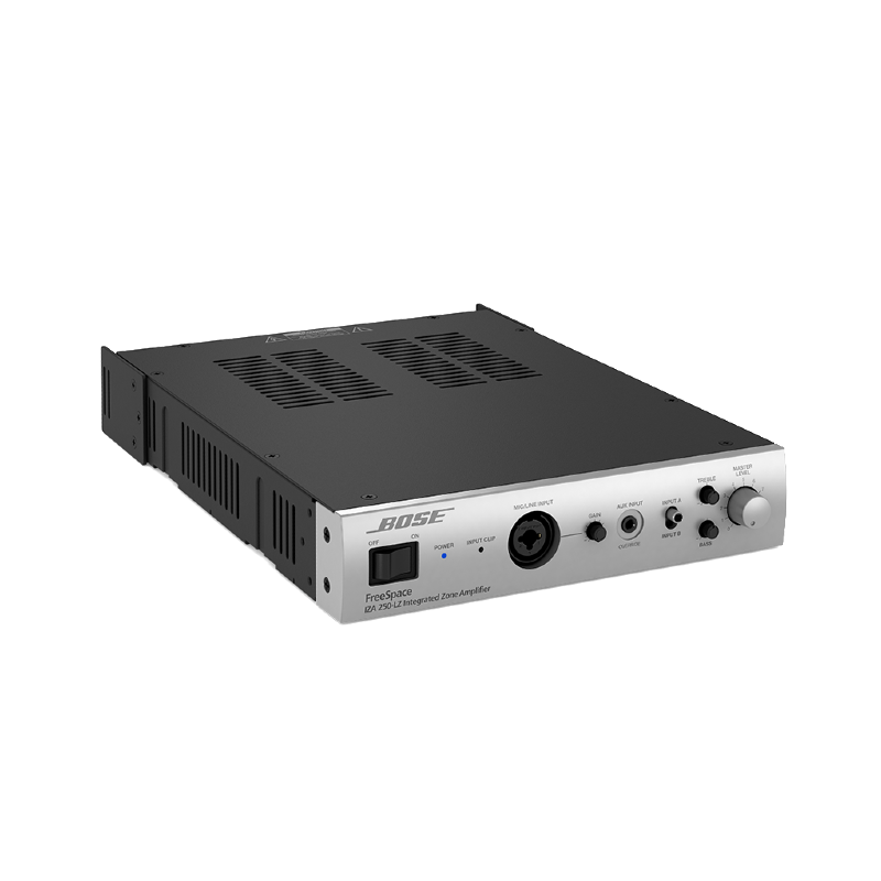 The FreeSpace IZA 250-LZ is a compact, high-quality integrated zone amplifier designed for background/foreground music and paging applications. It combines an amplifier, digital signal processing (DSP), and zone control in a single, easy-to-use unit. Optimized for Bose FreeSpace loudspeakers, it delivers excellent sound quality while simplifying system setup and operation.