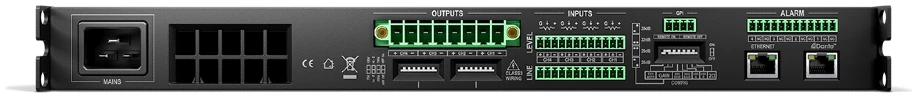 • 4 × Balanced Euroblock loudspeaker outputs (low-Z / high-Z selectable) - Front Panel: Power button, LED indicators (signal, clip, protect, standby, network)