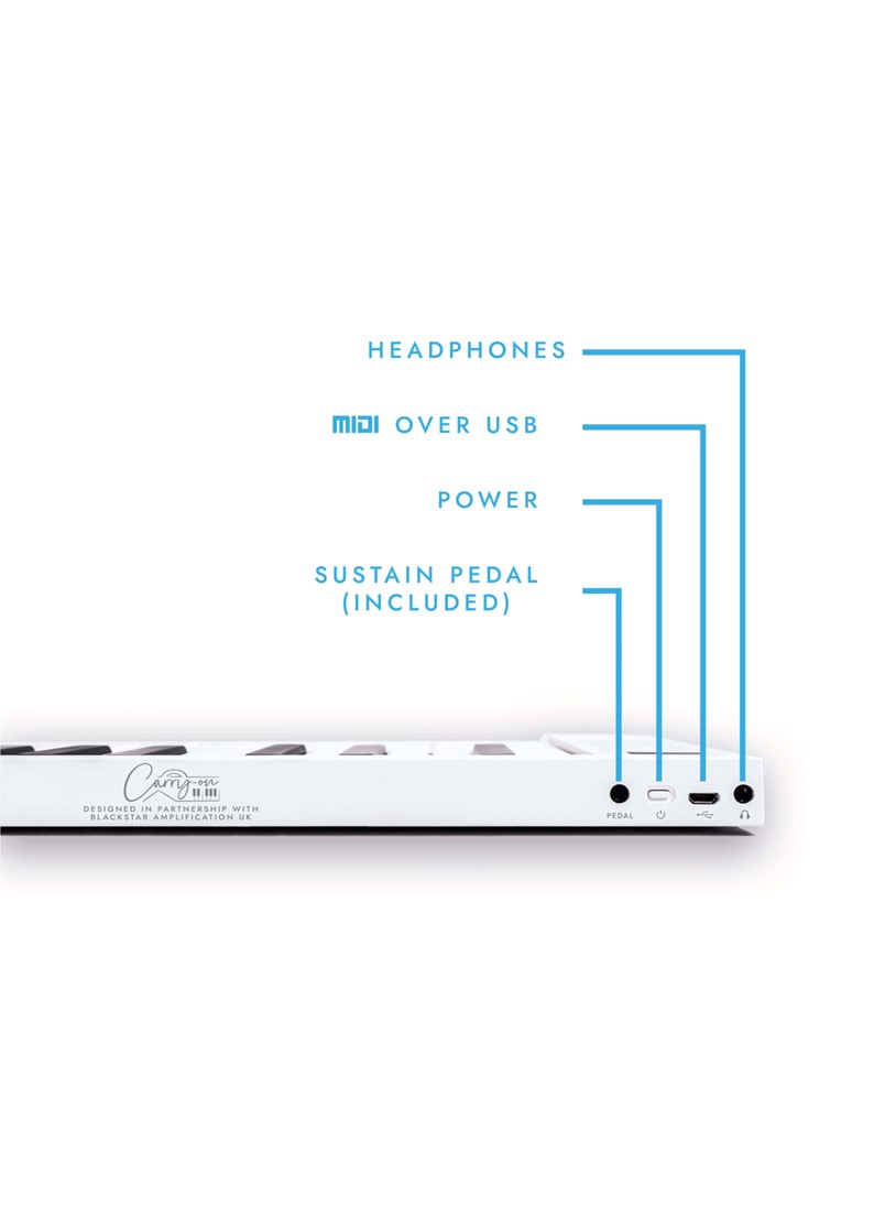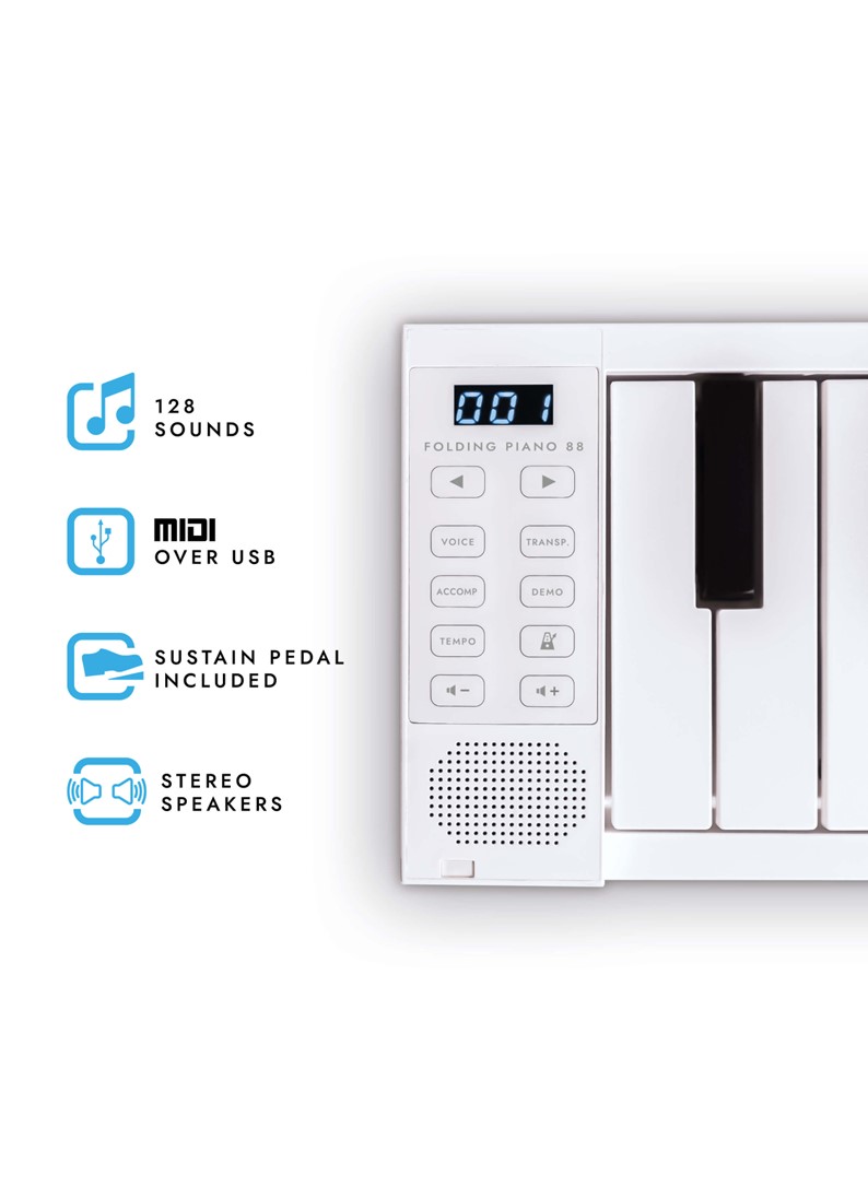 The CARRY-ON-FP88 88 Key Folding Piano White offers an affordable, full-size piano experience at a fraction of the cost. Its compact and lightweight design makes it easy to take and store anywhere. You can practice at all hours without disturbing the neighbors, thanks to its plug-and-play functionality.