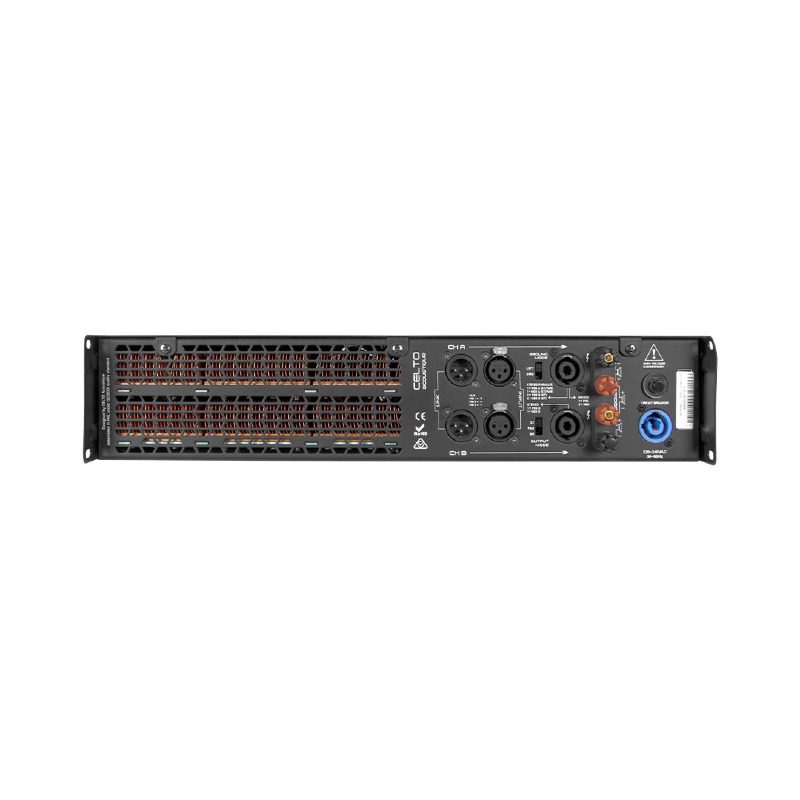 Rear Panel | 2 NEUTRIK XLR Input with latch, 2 NEUTRIK XLR Link ,2 NEUTRIK Speakon NL4, 2 speaker Binding post terminals, Stereo / Parallel / Bridge switch, Ground / Lift switch, Magnetic Breaker, PowerCon 20A (Included)