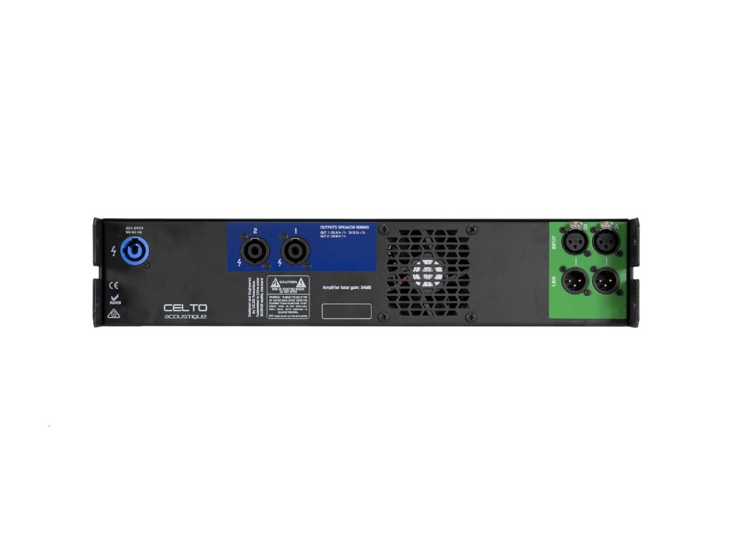 The Celto Acoustique P2.14 is a professional 2-channel Class-D amplifier designed for fixed installation and touring applications. Part of Celto’s Performance Series, it delivers high power output with exceptional efficiency, wide frequency response, and ultra-low distortion. Built in a rugged 2U rackmount chassis, the P2.14 is ideal for driving professional loudspeakers in demanding environments.