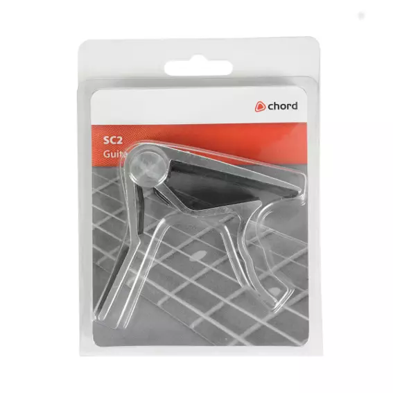 Metal capo with easy to fit spring loaded mechanism. Ideal for acoustic or electric guitars.