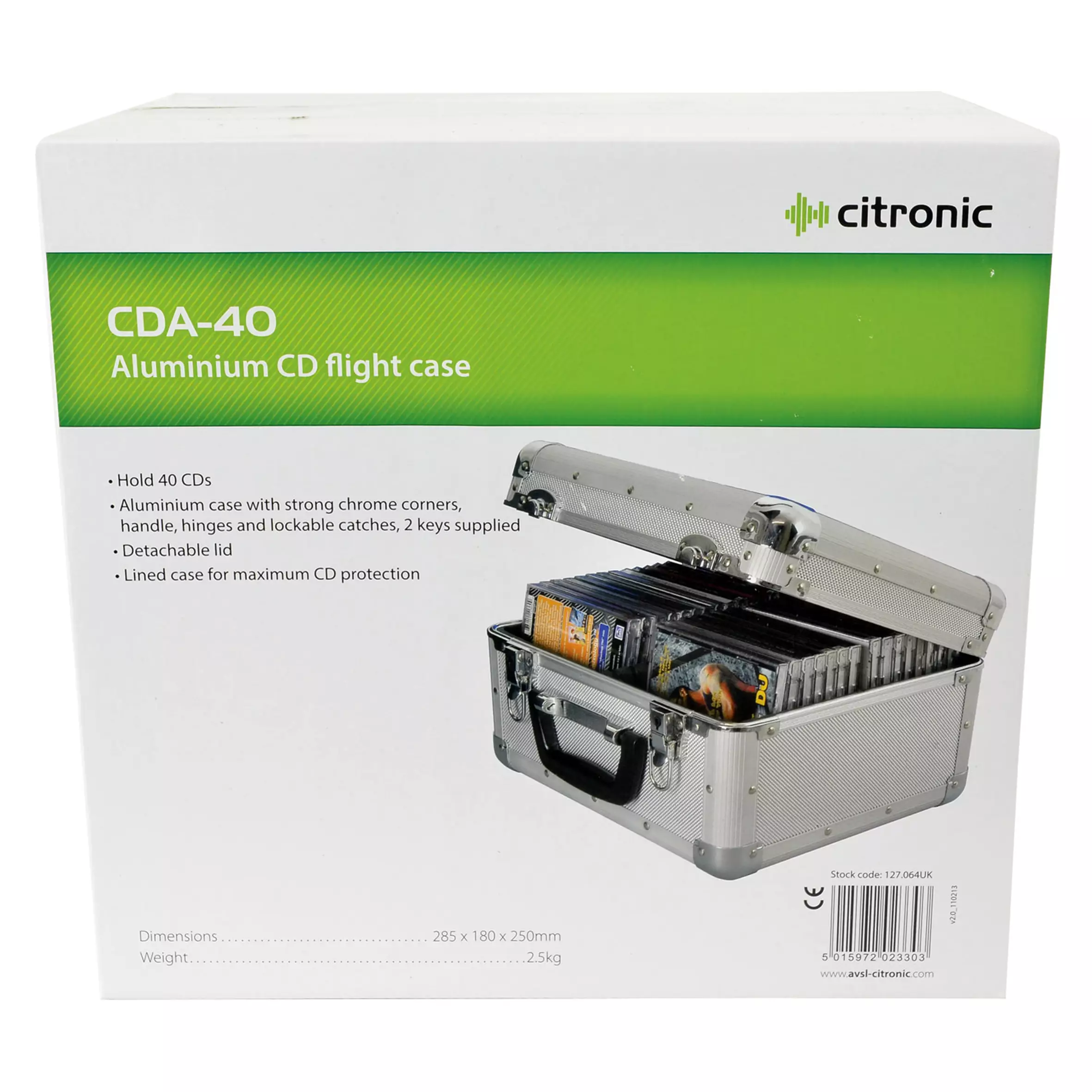 A range of robust aluminium flight cases for storage of CDs. The case features internal padding, with separators for the CDs. The outside of the case is made from tough diamond patterned aluminium with curved extrusions and chrome plated steel corners and hardware. The catches secure the removable lid and can be locked using the keys provided, the carry handle has cushioning for comfort. Ideal for the mobile DJ.