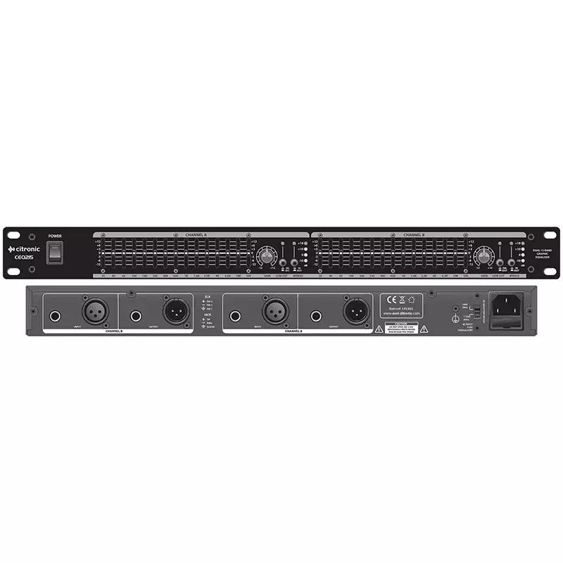 The CEQ215 is a 19″ rack mounted dual 15-band graphic equaliser, which allows the adjustment of labelled frequencies via the individual cut/boost faders. Up to 12dB of cut or boost for frequencies ranging from 25Hz to 16kHz for accurate audio spectrum control.