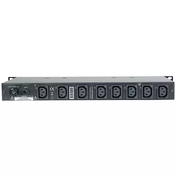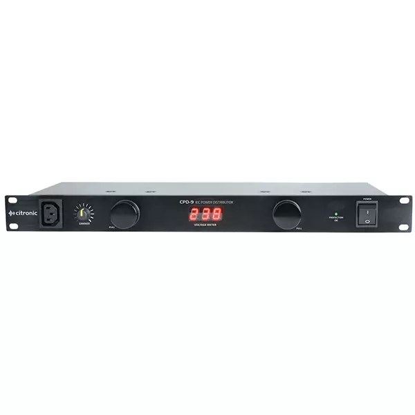 Protect your equipment and organise your power distribution with this 19″ rack mounting unit. The front panel features a digital voltage meter and two LED lamps with dimmer control for illuminating your rack.