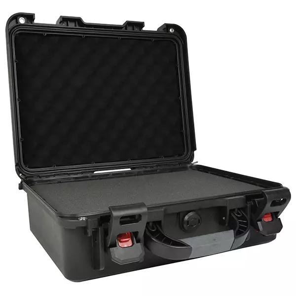 A heavy duty moulded equipment case made from high density ABS material and filled with pluck foam to allow cut-outs to be formed for the equipment being stored or transported. Fully sealed with an integral gasket for waterproofing, the case is sealed using 2 lever clamps and can be carried by it’s folding, soft-grip handle. If you care about your gear, you need to care about what it is transported in.