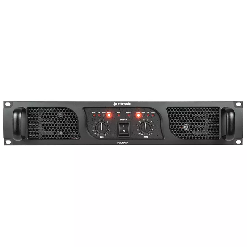 19″ rackmount 2U power amplifiers with dual fan cooling and class H architecture for safe, reliable power delivery. Balanced inputs via 6.3mm jack or XLR sockets, speaker outputs on 2 SPK connectors or 4mm binding posts. High power output stable down to 2 Ohms load per side can also be bridged mono to 4 Ohms. Switchable ground lift, bridge mode and clip limiter.