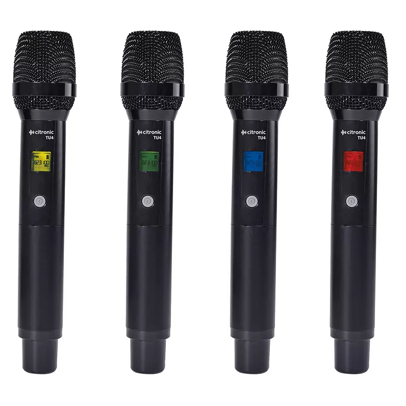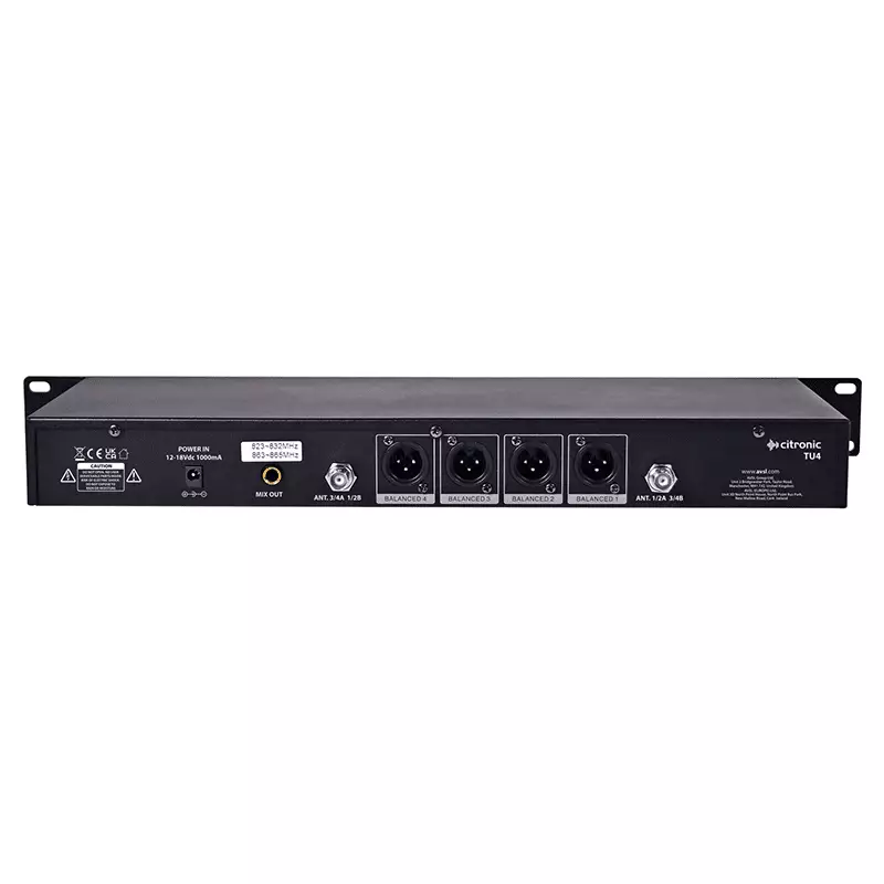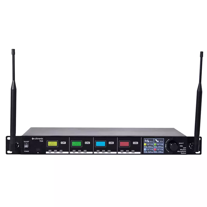 True diversity UHF wireless microphone system with 1, 2, or 4 individually programmable channels that sync to each transmitter to set the carrier frequency, EQ settings, transmission power, and even the display backlight colour for identification. Transmitters are available as either rugged handheld microphones with a high-quality dynamic capsule in a full metal housing or as a compact bodypack with a choice of neckband or lavalier microphones, all with fully balanced signal connection. Twin BNC antennas can be connected at the rear of the receiver or to the front panel when 19″ rack-mounted using the supplied BNC extension cables. Each channel is tuneable within the license-free UHF and regulated duplex gap bands, arranged in 8 groups of 8-16 carrier frequencies. Both receiver and transmitter settings are programmed via a front panel full colour TFT display with a rotary encoder for parameter adjustments. Each channel has a further backlit display that corresponds to the display on each transmitter and sync’s wirelessly via an IR connection, avoiding the complication of multiple controls on each transmitter. For uncompromising wireless performance, the TU-series has been designed to provide a reliable and adaptable system for stage performances, conferences, theatrical productions and other vocal duties.
