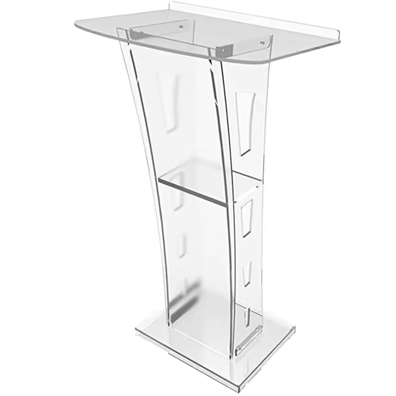 3.The tabletop is spacious and smooth, and the sloping tabletop and baffles are designed to store laptops, presentation materials, documents and other items to prevent them from falling, which greatly improves the convenience of reading. In addition, additional storage space is designed in the center and bottom of the podium for you to store beverages, media equipment or other items.