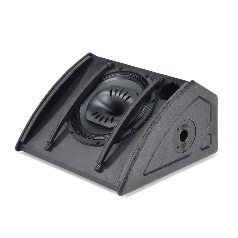 Built from high-grade birch plywood, the FMX 12 cabinet combines strength with a compact footprint. The coaxial configuration ensures time-aligned sound projection and uniform coverage. The multi-angle design allows easy placement as a floor wedge or upright on a pole mount. A protective steel grille and ergonomic side handles enhance durability and portability.
