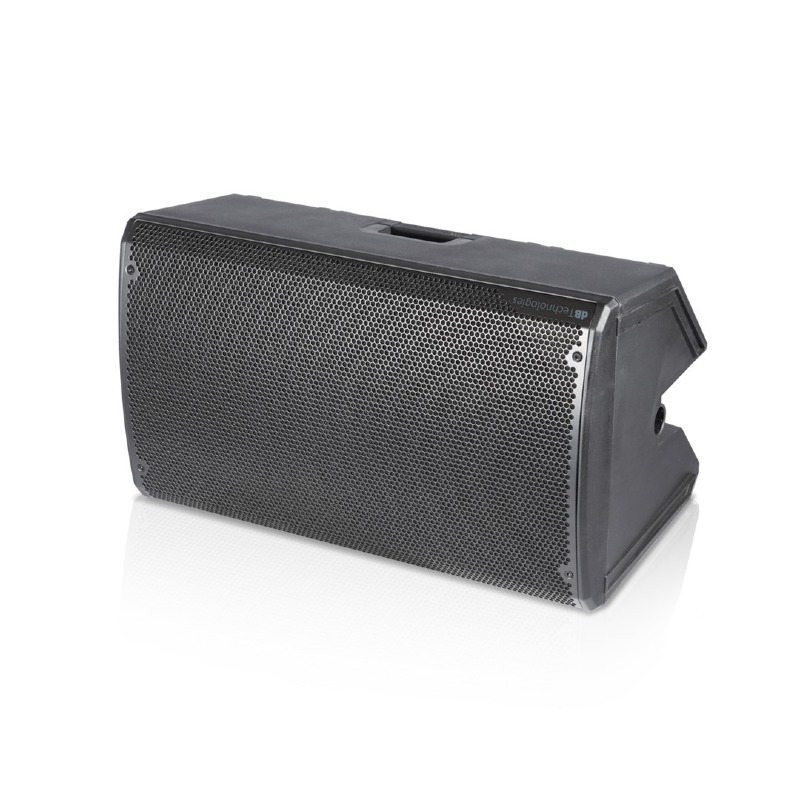 The cabinet is made from durable polypropylene with a textured black finish, offering excellent strength and minimal resonance. It features ergonomic side handles, a dual-angle 36 mm pole mount, and a floor-monitor wedge design for maximum flexibility. The asymmetric horn ensures wide horizontal coverage and controlled vertical dispersion for precise projection.