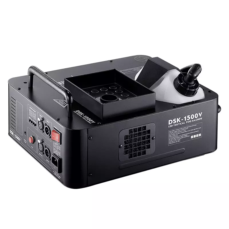 As a classical vertical fog machine, DSK-1500V has been a best seller for tens of thousands of sets in the past, which blasts a vertical stream of safe, water-based fog while simultaneously illuminating it with 21 high-power (3w) LEDs. A combination of red, green, and blue LEDs allows you to easily mix the perfect color to 6-8 meters high. More importantly, with DJPOWER’s unique “immediate-stop” patented technology, it jets and stops synchronously and consistently. With newest “Anti-Squirting Plus” technology, it is safer no matter hung or placed on the floor.
