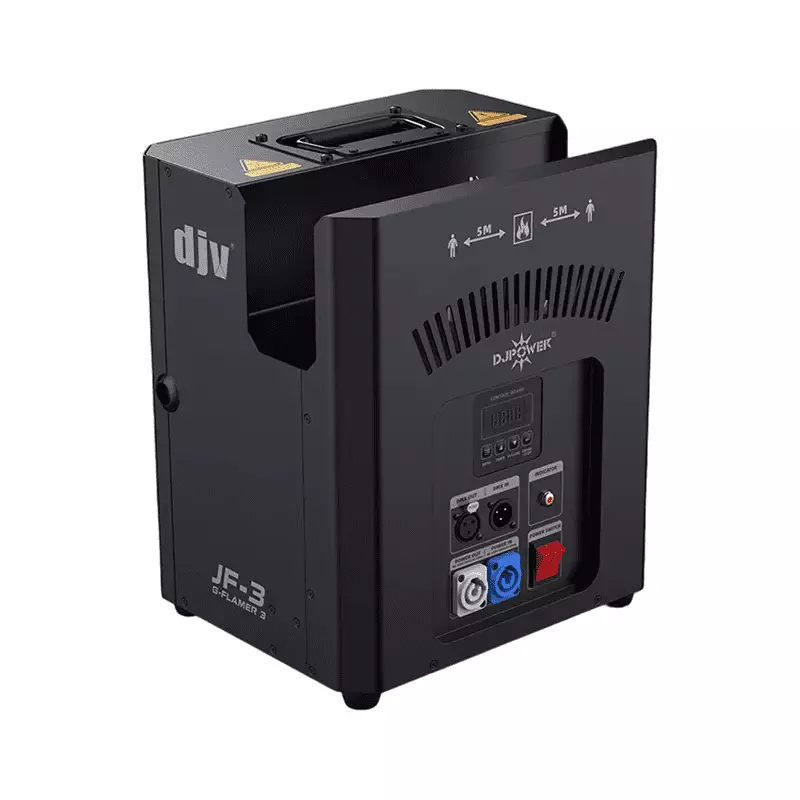 The JF-3 is DJPOWER’s newly developed gas flamer, designed for powerful flame effects and enhanced safety. It features an electric pulse ignitor with dual ignition, and three fan-shaped nozzles that produce striking flame bursts reaching heights of 3–4 meters.