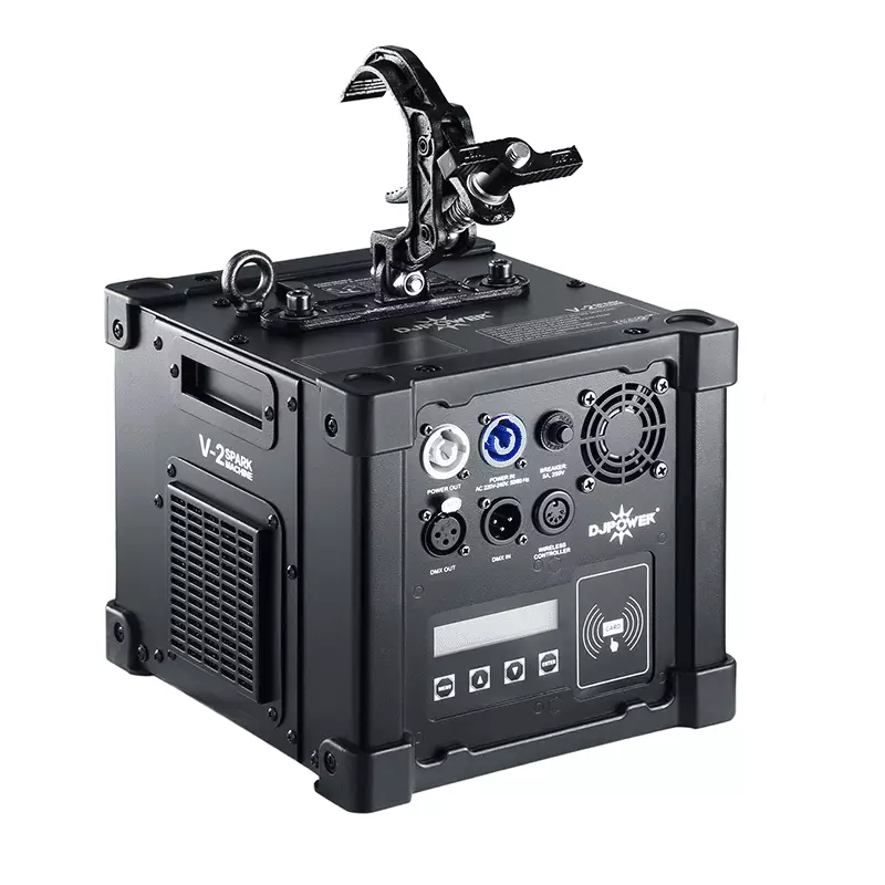 The Spark machine produces a fantastic, non-hazardous effect that looks like traditional fireworks or pyrotechnics, adopting brand-new control system and standard DMX Control to realize multiple stage special effects.It thoroughly changed the drawbacks on traditional cold fireworks such as danger caused by gunpowder, environmental pollution, restricted for use etc.Compact size, hanging special effects equipment to generate dazzling silver “waterfall” effects. The duration and height of the effect can be varied throughout a display, with sequences of ‘dancing’ sparks created to entertain audiences.(Hereby declare that the spark machine series products produced by DJPOWER (Guangzhou DJPOWER Electronic Technology Co., Ltd.), models: V-1, V-2, V-3, V-4, V-5, V-6, do not involve any patent infringement issues.)
