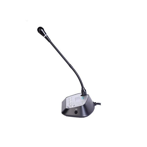 D6222 belongs to conference room audio system, it is desktop delegate speech/vote unit provides functions such as speech, vote, check-in and self-checking. It adopts goose-neck microphone, built-in magnetic loudspeaker, headphone jack, and also provide power-on indicating light and button and light indicators.