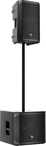 settings), visual monitoring of limiter status, input level control and meters, and master volume control to ensure optimal gain structure. ELX200 powered models are ideal for portable and installed applications, with lightweight and compact 15-mm wood enclosures, integrated M20 threaded pole polemount plate, and two-handle design for easy lifting.