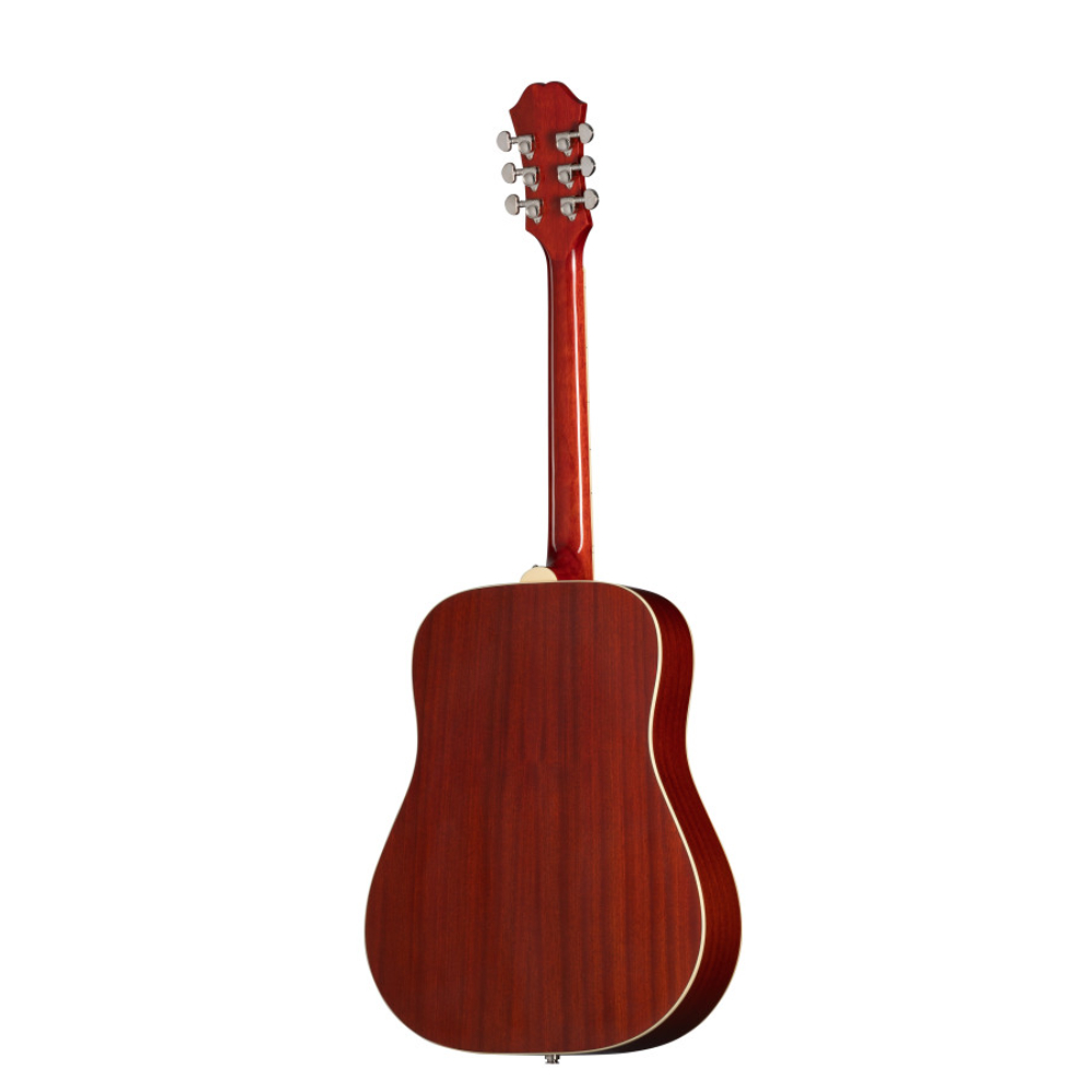 The Epiphone EEHB-FCN Hummingbird Studio in Faded Cherry blends classic style with modern enhancements, making it a versatile choice for musicians. Its solid spruce top and mahogany body produce a rich, evolving tone, while the Fishman® Presys VT™ electronics ensure excellent amplified performance. With elegant features like the historic Hummingbird™ pickguard and Grover® Rotomatic® tuners, this guitar offers both aesthetic appeal and reliable functionality.