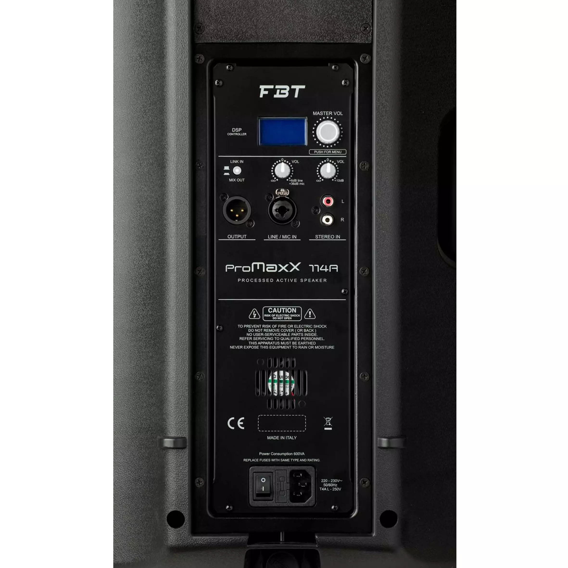 Equipped with custom FBT speakers complete with B&C’s renowned compression driver technology,PROMAXX combines true made-in-Italy quality and style. At its heart is a purpose-built FBT amplifier module with a switch-mode power supply. For the low frequency section, 700W RMS is driven via a highly efficient Class-D topology, boasting extremely low THD. For HF, meanwhile, 200W RMS is delivered by a Class-H / AB design chosen to ensure the highest definition of audio performance at high frequencies.