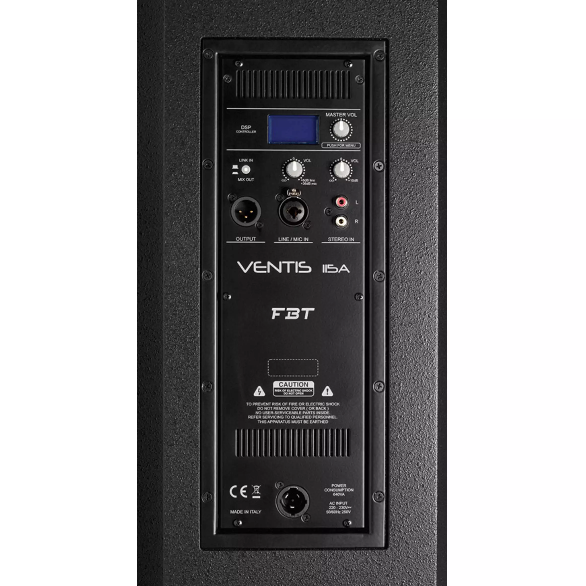 - Control Panel features balanced XLR/Jack input, XLR LINK OUT, 2 x Volume, RCA Stereo input, DSP display with rotative encoder and push