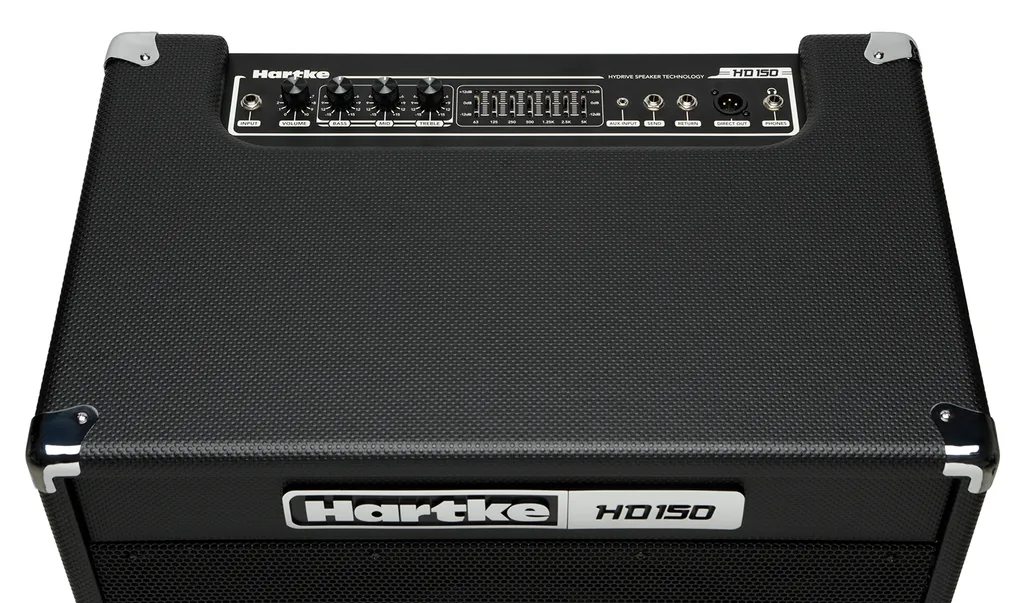 - Top-mounted amplifier with Volume, Bass, Mid and Treble controls