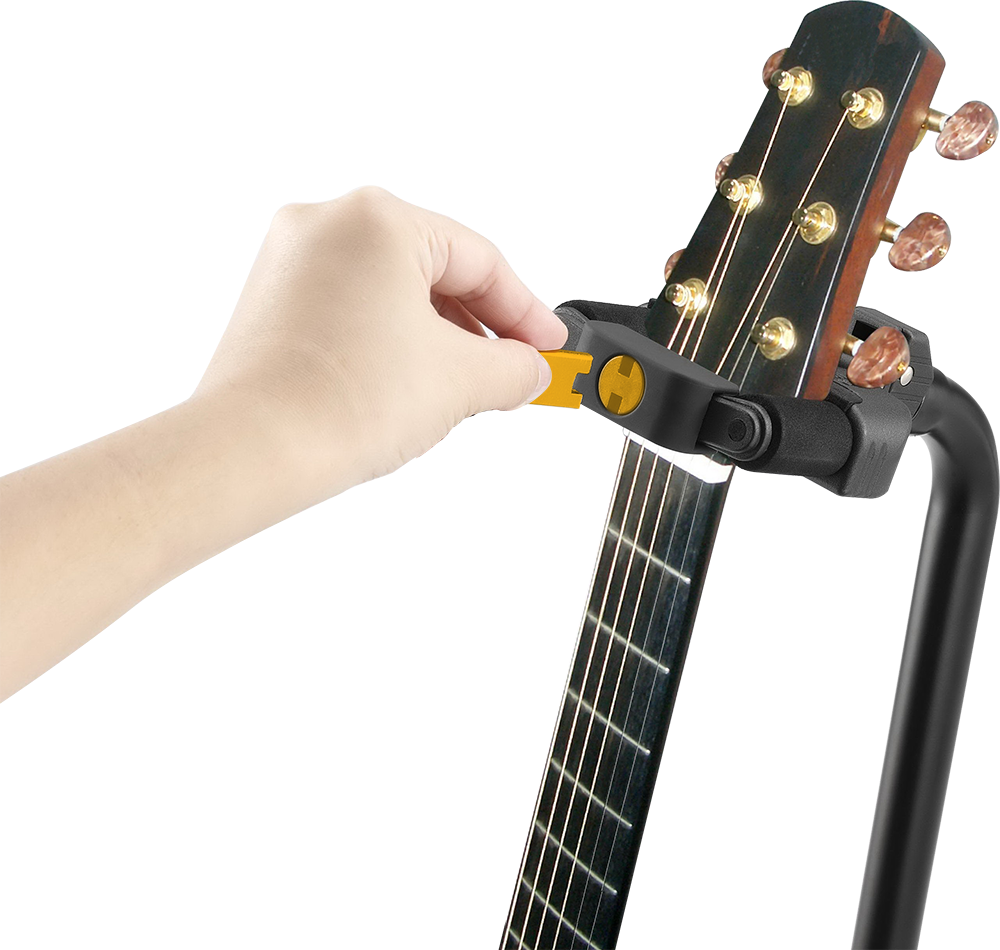 The HERCULES HA101S AGS Lock System is a replacement and upgrade accessory designed for HERCULES guitar stands equipped with the Auto Grip System (AGS). It securely locks the instrument in place by automatically engaging when the guitar or bass is placed on the stand, providing reliable protection against accidental slips or falls.