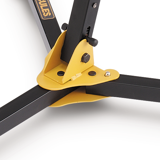 - Swivel Legs with Locking Pins snap securely into place, fit around other equipment easily, and fold up compactly. The Locking Pin locks the stand in place; simply press the pin to fold.