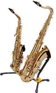 The HERCULES Double Saxophone Stand DS537B features the one-piece folding design with locking pins and can support up to 44 pounds total instrument weight.