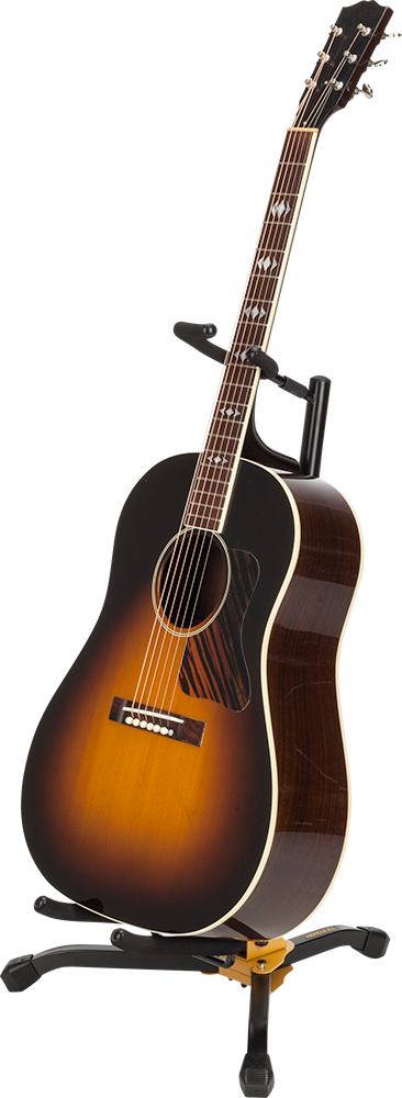 The HERCULES Guitar Stand GS405B features a shock-absorbing system. Both the yoke and cradle are flexible and secure to fully protect the instrument.