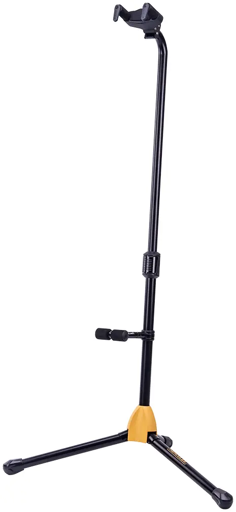 The HERCULES Guitar Stand GS412B PLUS features the Auto Grip System (AGS) yoke, Instant Height Adjustment Clutch, Specially Formulated Foam (SFF) padding contacts and the adjustable back rest.