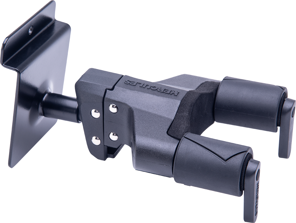 The HERCULES Auto-Swivel Yoke Hanger GSP39SB PLUS rotates automatically to accommodate different shaped guitars or basses vertically and safely. It features a slat wall base for display use.