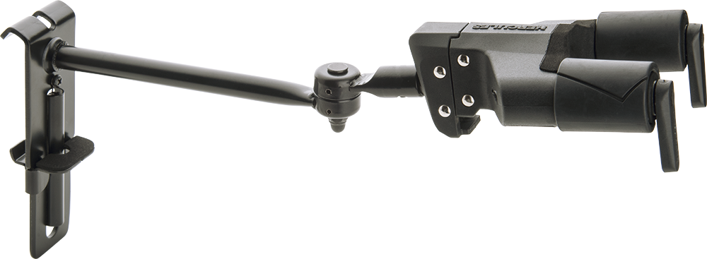 The HERCULES Auto-Swivel/Adjustable Yoke Hanger Hercules Stand GSP50HB PLUS -Grids rotates to accommodate most guitars and pivots left or right so you can display the instrument facing various directions. It features a gridwall base for display use.