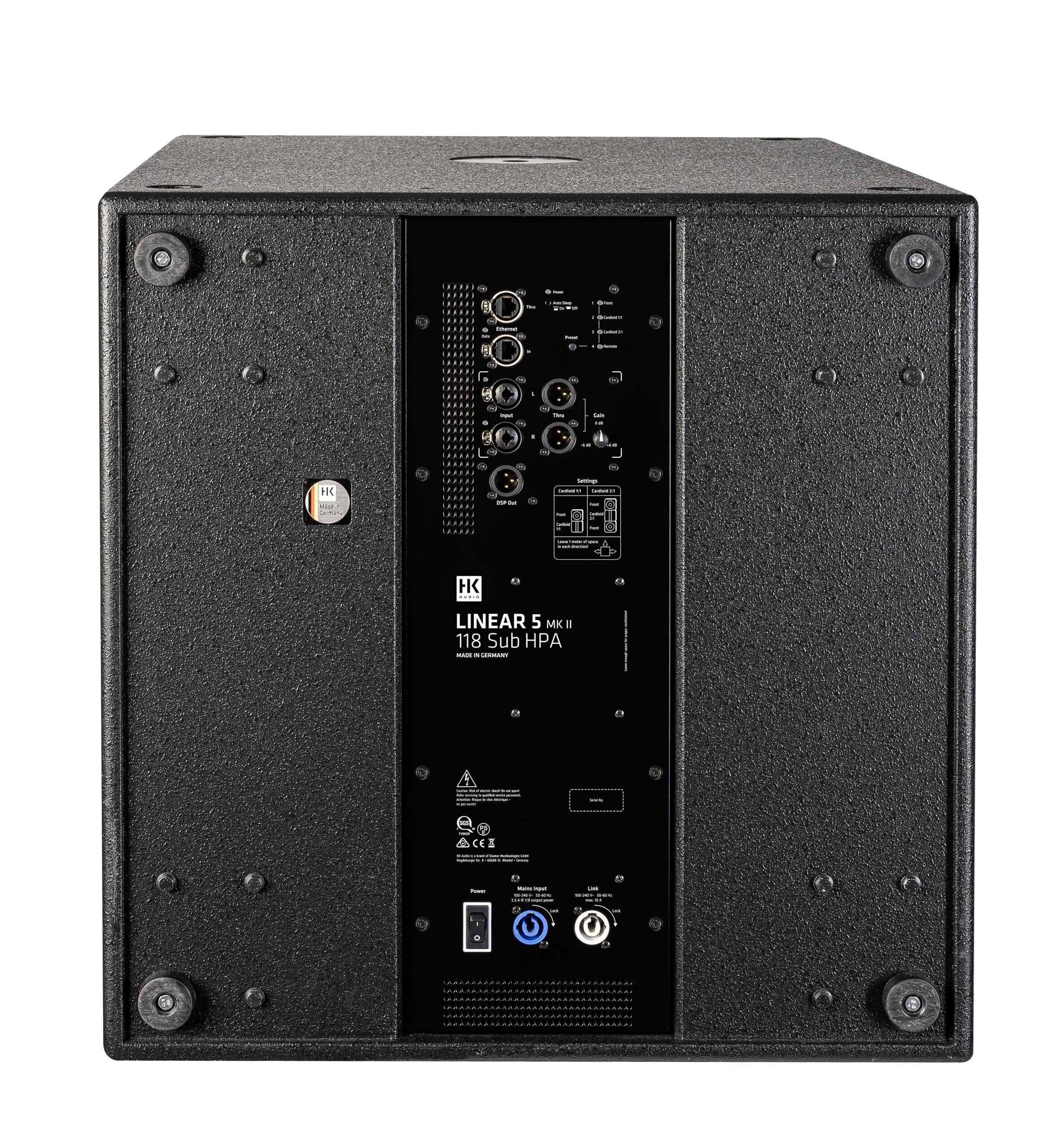 Low frequency 1 x 18″ cone speaker, 4″ voice coil