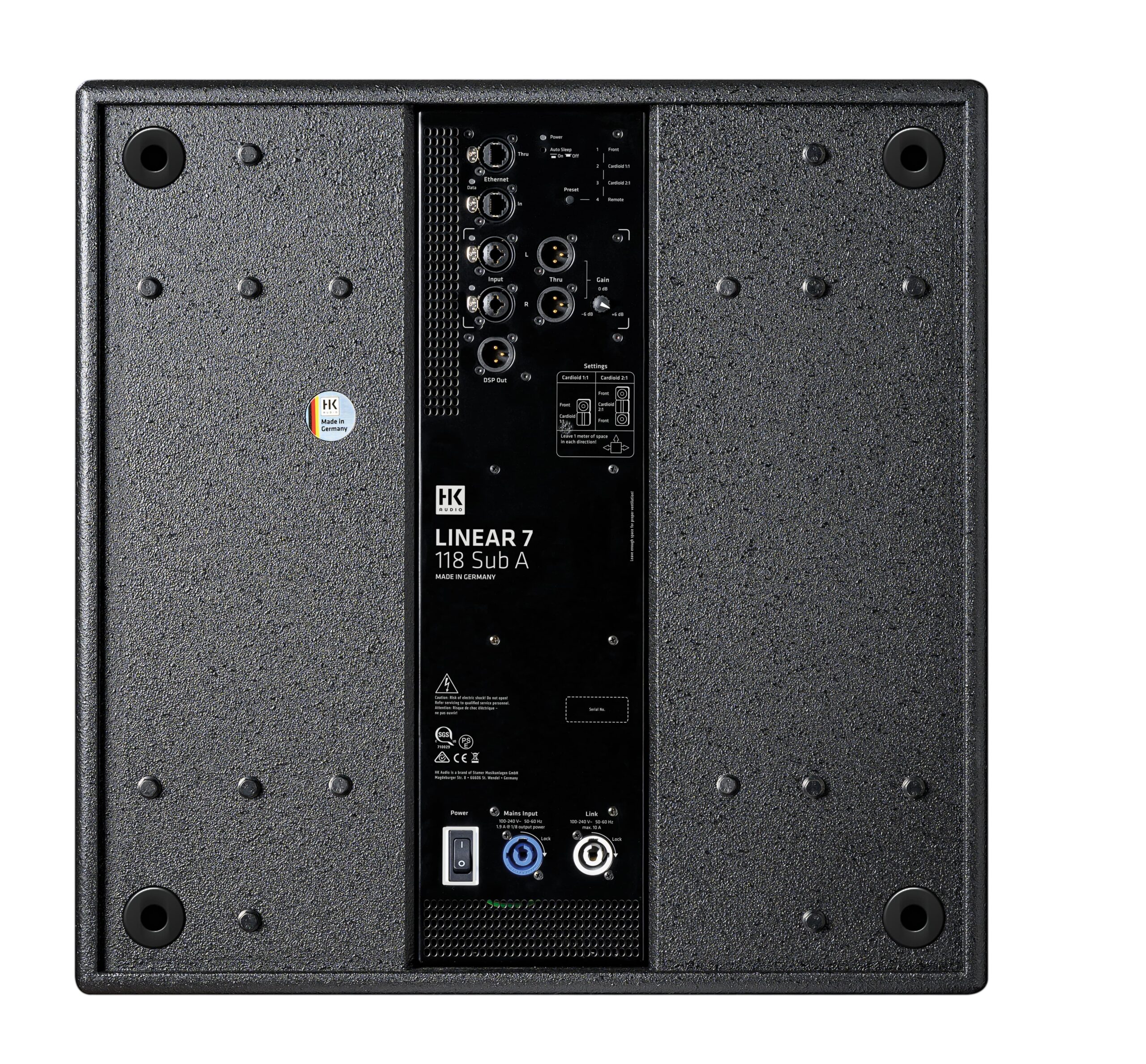 Low frequency 1 x 18″ cone speaker, 4″ voice coil