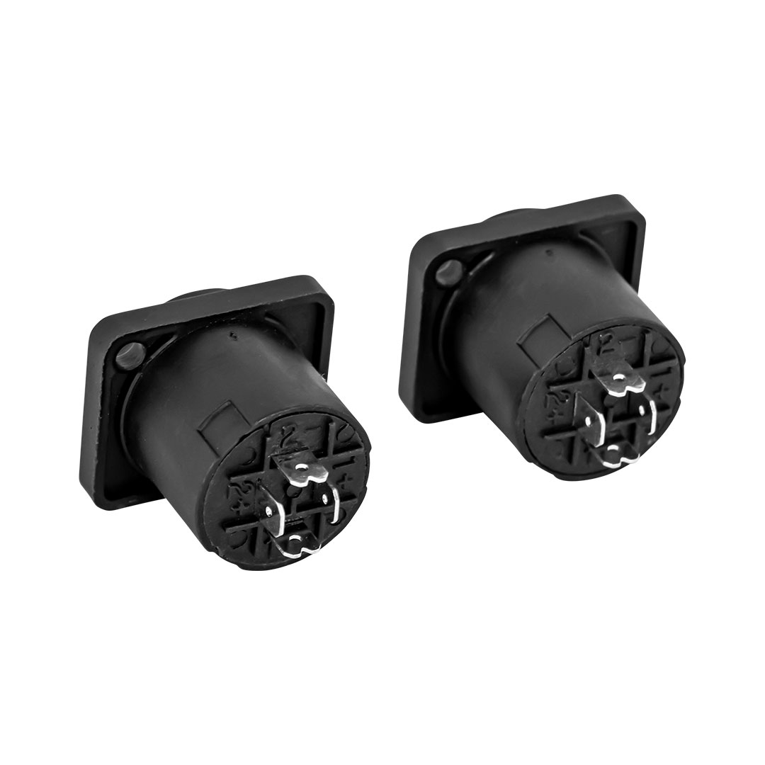 The Hybrid CNSC is a dual pack, 4 pole chassis mount speaker connector, suitable as a replacement connector for existing cabinets or for newly manufactured cabinets. The CNSC is manufactured from high-grade, durable injection moulded ABS material.