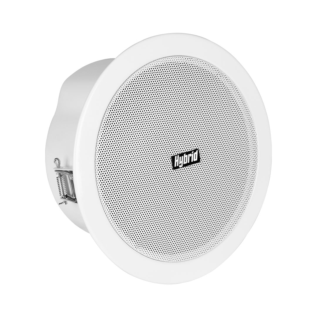The HYBRID CL6B-EVAC public address ceiling speaker is a 6” full range ceiling mount speaker. This speaker has been designed predominantly for spaces that might require emergency announcements such as warehouses, factories or public spaces. As such, the design of the HYBRID CL6B-EVAC speaker conforms to the requirements of the EN54-24 regulations. It is fireproof, manufactured with a metal grille, baffle and back cover, and has high efficiency and linearity. Installation is simple utilising the spring clamps allowing for a secure attachment to the ceiling or wall paneling.