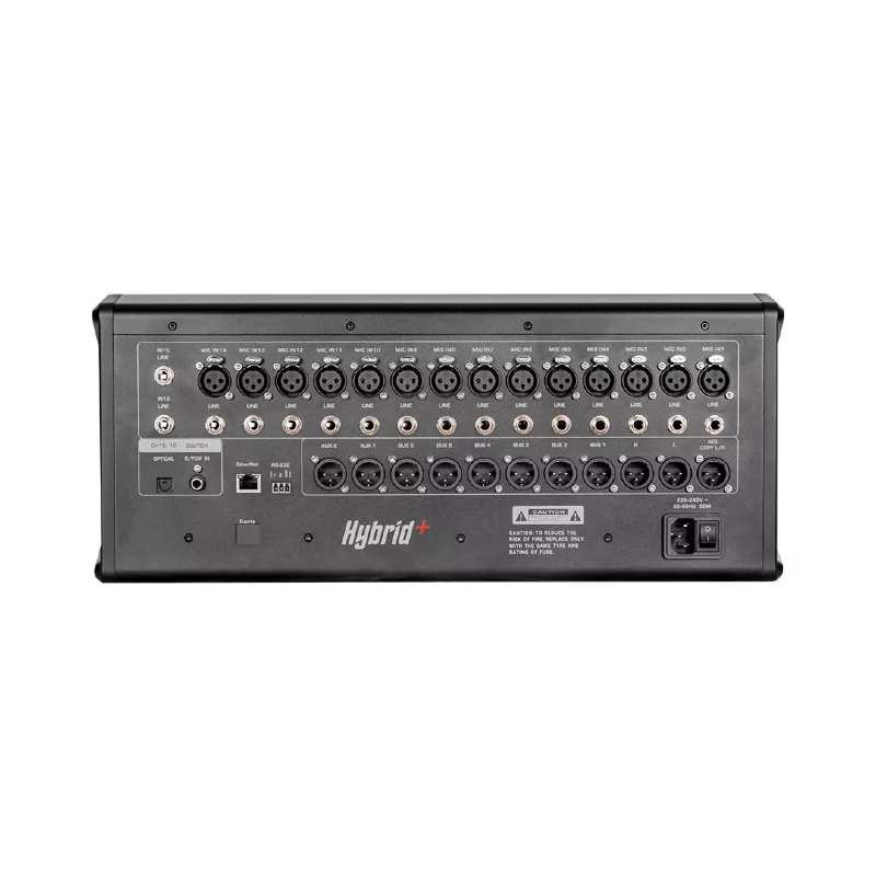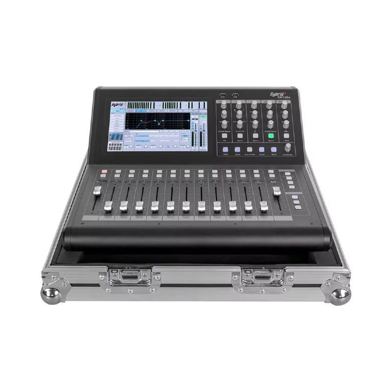 The Hybrid+ DM1606 is a professional 16-channel digital mixing console engineered for live sound, studio, and installation applications. Combining flexible digital routing, built-in DSP effects, and intuitive control, the DM1606 offers premium sound shaping in a compact, rugged format. It includes a protective flight case, making it ideal for touring, mobile production, and rental setups.