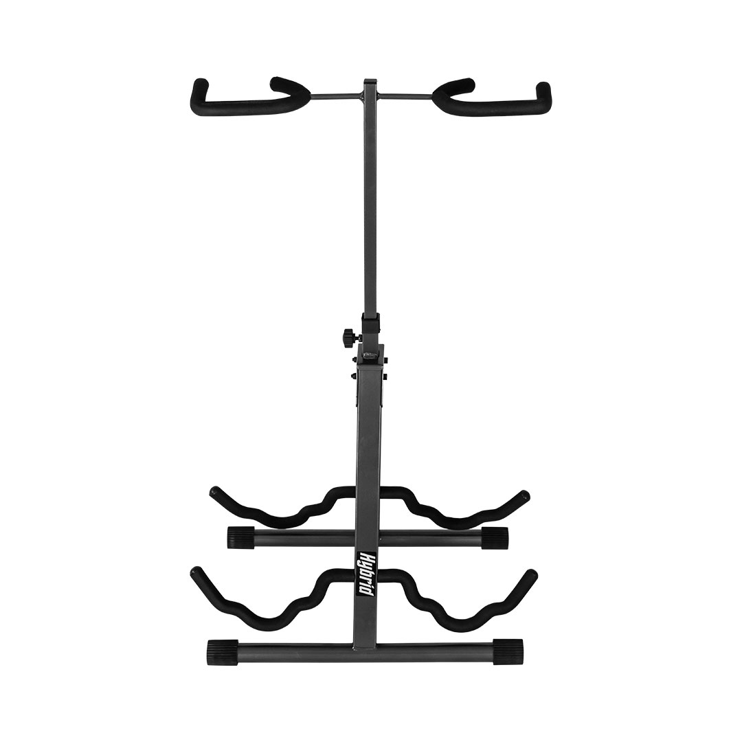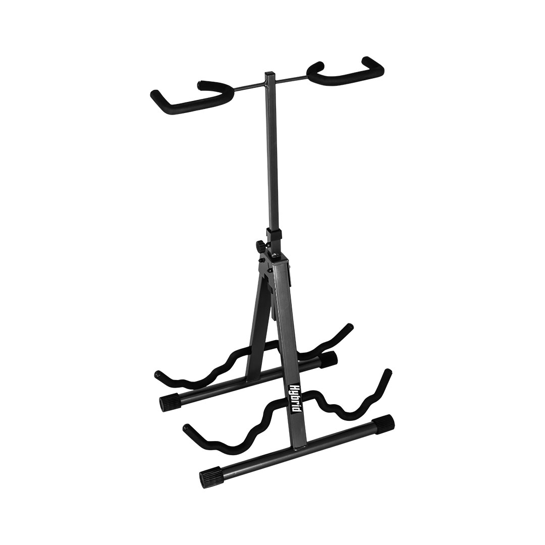 The Hybrid GS02 is a durable, dual guitar stand with an adjustable height of 500mm to 780mm. The GS02 is suitable for any type and size guitar, be it a full, 3/4 or 1/2 sized guitar, Classic/Acoustic, Electric or a Bass.