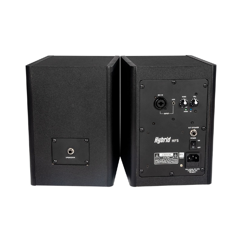 The Hybrid HF5 set comprises of two cabinets, an active and passive 5″, manufactured from wood and finished off in a stylish black veneer. The set features a convenient wireless Bluetooth module, allowing for playback though any smart device without the hassle of interconnecting cables. Stylish build and convenience, makes the HF5 ideal for your personal listening pleasure at home or at the office.