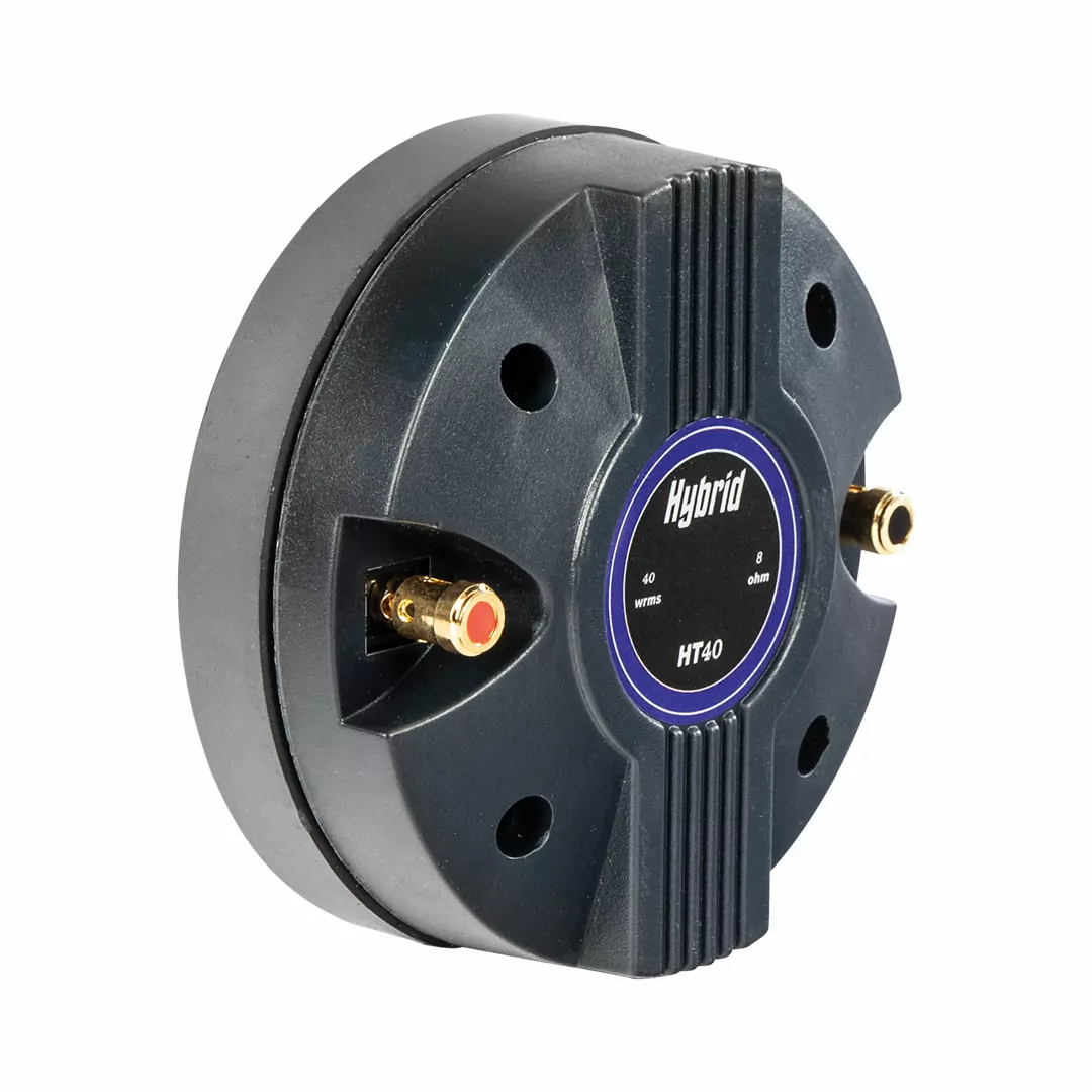 The Hybrid HT40 is a 1″ high-frequency compression driver designed for PA systems, speaker replacements, and custom cabinet builds. With an 8Ω impedance, ferrite magnet, and robust construction, it delivers clear treble and vocal projection, making it ideal for both portable and installed sound systems.