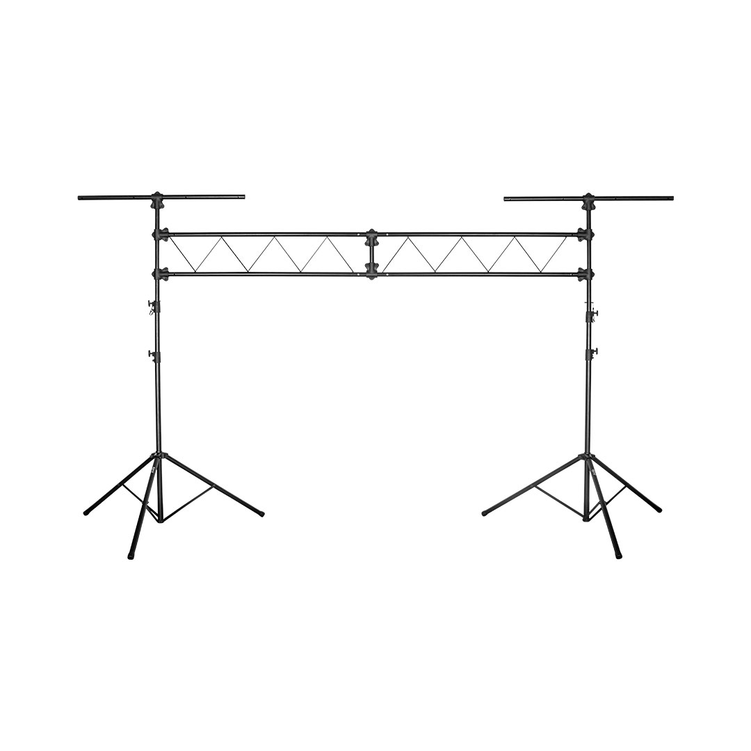 The Hybrid LS02 is a modular lighting tripod stand system with two tripod and T-bar stands and a 3m flat truss bridge between the two stands. The tripod stands are height-adjustable between 1.45m to 2.5m.