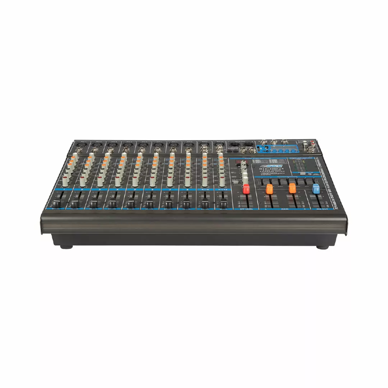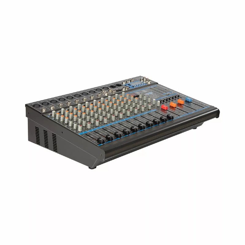 The Hybrid M121200PUX is a professional 12-channel powered mixer combining a robust high-output power amplifier, a versatile mixing console, and a built-in digital media player. Featuring USB/SD playback, Bluetooth connectivity, and a built-in DSP effects processor, it delivers powerful, clear sound ideal for live performances, churches, DJs, and rental PA systems.