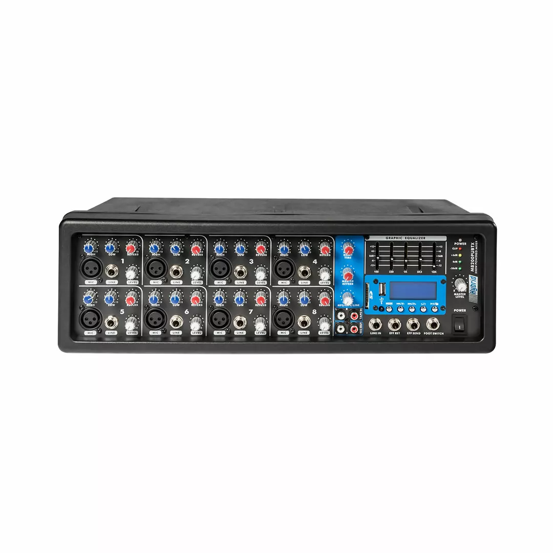 The Hybrid M8200PUBTX is a professional 8-channel powered mixer that combines a clean-sounding power amplifier, versatile mixer section, and media playback features in one compact unit. With Bluetooth audio streaming, USB/SD playback, and a built-in digital effects processor, it’s perfect for small- to medium-sized PA applications such as live bands, DJs, churches, and event venues.