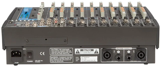 The Hybrid ML1260PDUX is a professional 12-channel powered mixer that integrates a high-output dual-amplifier, versatile mixing console, and built-in digital media player. Featuring Bluetooth streaming, USB/SD playback, and dual 24-bit DSP effects, the ML1260PDUX is built for live bands, churches, DJs, schools, and rental systems that demand clean power, flexible routing, and portability.
