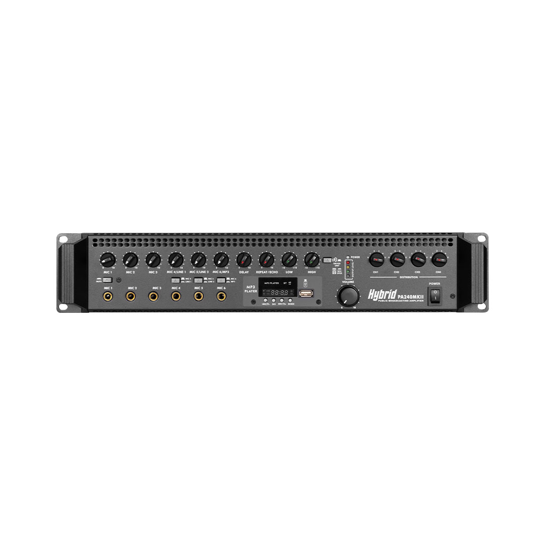 Compared to an analogue amplifier, the same-level Class-D amplifier is more portable, weighs 60% less and has a 40% lower energy consumption. This series also has over-temperature, over-voltage, over-current and short circuit protection, an input signal limit and an output current over-current limit.