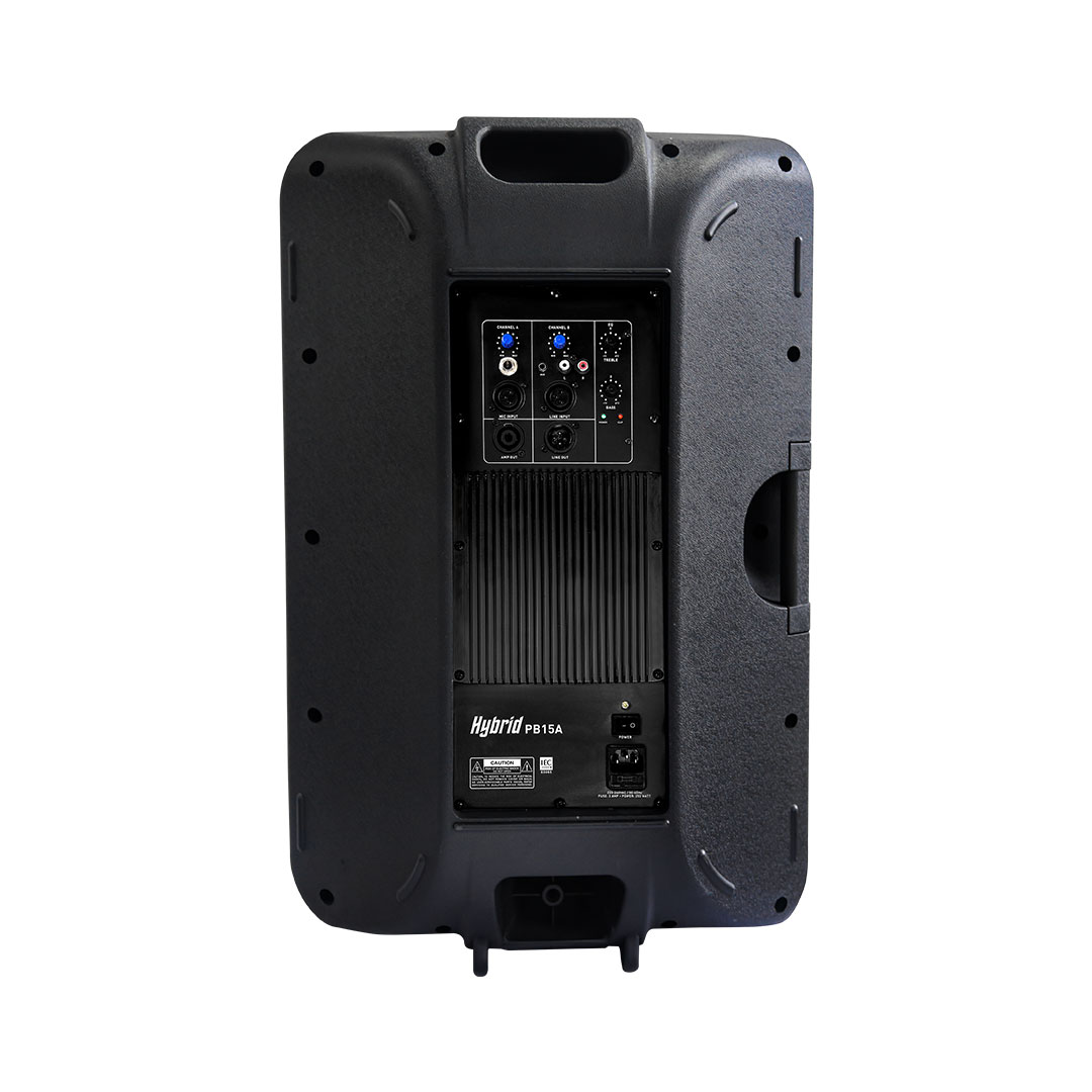 The Hybrid PB15A is an active, 2 channel input (15″ low frequency speaker with a 1″ high frequency compression driver) ABS enclosed speaker cabinet.