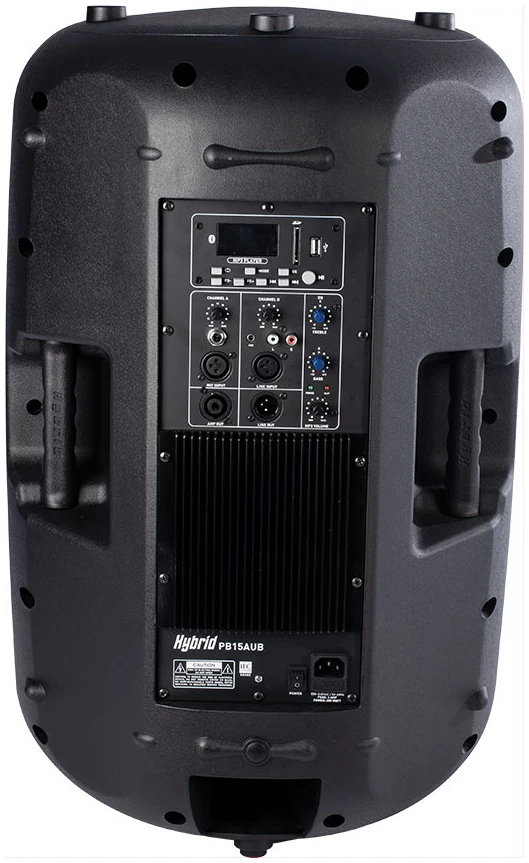 The Hybrid PB15AUB is a powerful 15-inch active PA speaker designed for DJs, schools, churches, fitness instructors, event companies, and mobile sound systems. With built-in amplification, USB/SD media playback, Bluetooth audio streaming, tone controls, and multiple input options, the PB15AUB delivers strong bass, clear vocals, and reliable performance for indoor and outdoor events.