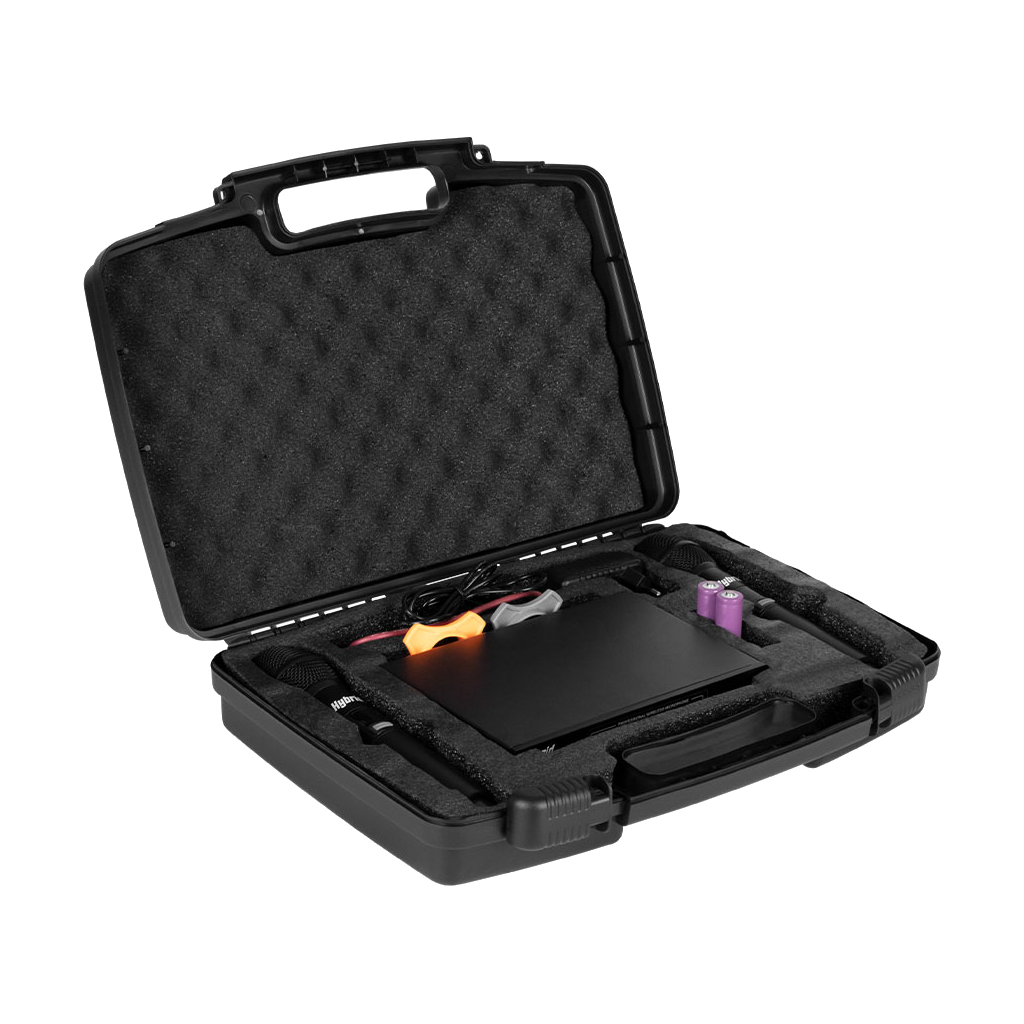 Transmitters: 2 x Handheld, LCD screen, metal casing