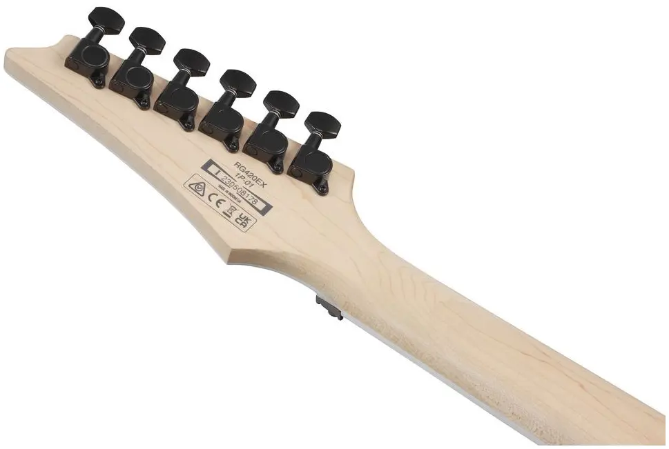 The Ibanez RG420EX-BKF Electric Guitar in Black Flat takes one of the most iconic guitar shapes and styles and turns it into a high-performance shred machine. Designed for speed, strength, and reliability, the RG420EX features a Wizard III Maple neck, jumbo frets, a Meranti body for balanced tonal resonance, and a pair of Quantum humbuckers in the neck and bridge positions. The RG is precise, articulate, and in every way a performance-built workhorse.
