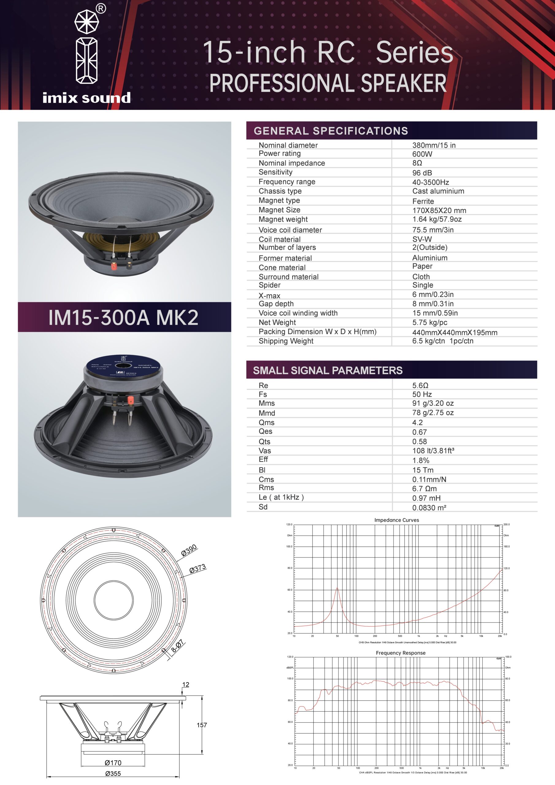 The Imix 15-300A MK2 Loose Speaker is a high-performance 15-inch speaker designed for both professional audio applications and audiophiles seeking powerful, clear sound. Featuring a robust design and exceptional power handling, the 15-300A MK2 delivers deep, punchy bass and smooth mid-range frequencies with impressive clarity, making it ideal for live sound reinforcement, studio monitors, or custom speaker builds.