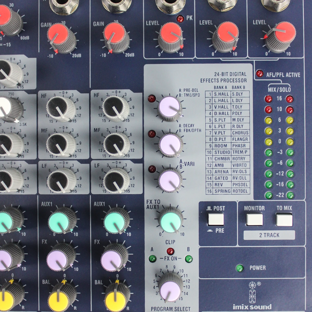 The Imix i-EFX 20 Channel Analogue Mixer is a compact yet powerful audio mixing console designed for small to medium-scale live sound and recording applications. Featuring 20 input channels, it offers versatile connectivity options for microphones, instruments, and other audio sources. The mixer boasts high-quality analog circuitry that delivers a warm and natural sound, along with built-in effects such as reverb and delay, which can be applied directly to individual channels or the overall mix. Each channel typically includes a 4-band equalizer for precise tone shaping, and the mixer also features multiple auxiliary sends for flexible routing of monitor mixes or external devices. Its durable, portable design ensures reliability in various environments, while offering simple, intuitive controls for easy operation. The Imix i-EFX 20 Channel Analogue Mixer is an excellent choice for audio professionals seeking a straightforward yet high-quality mixing solution.